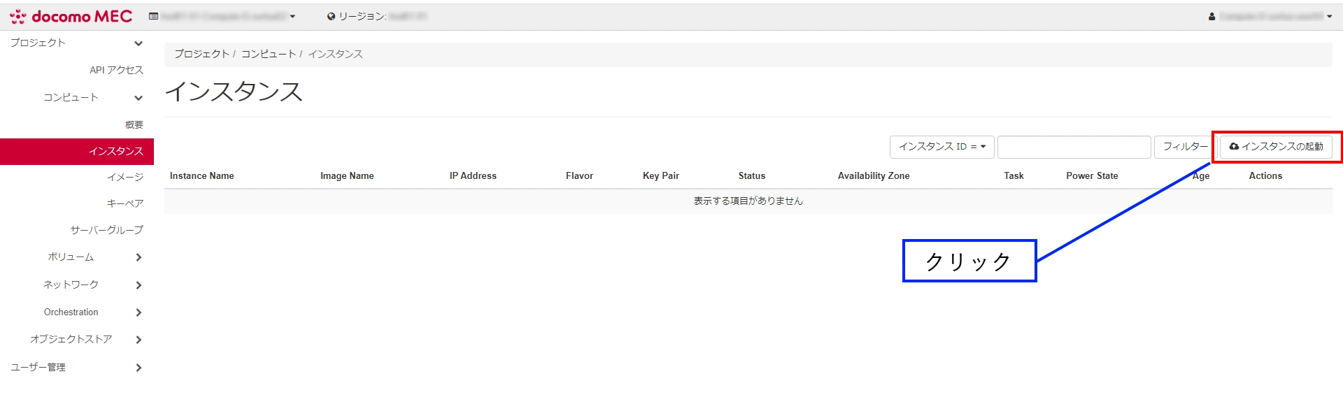 - 管理画面右上の「インスタンスの起動」をクリックします。