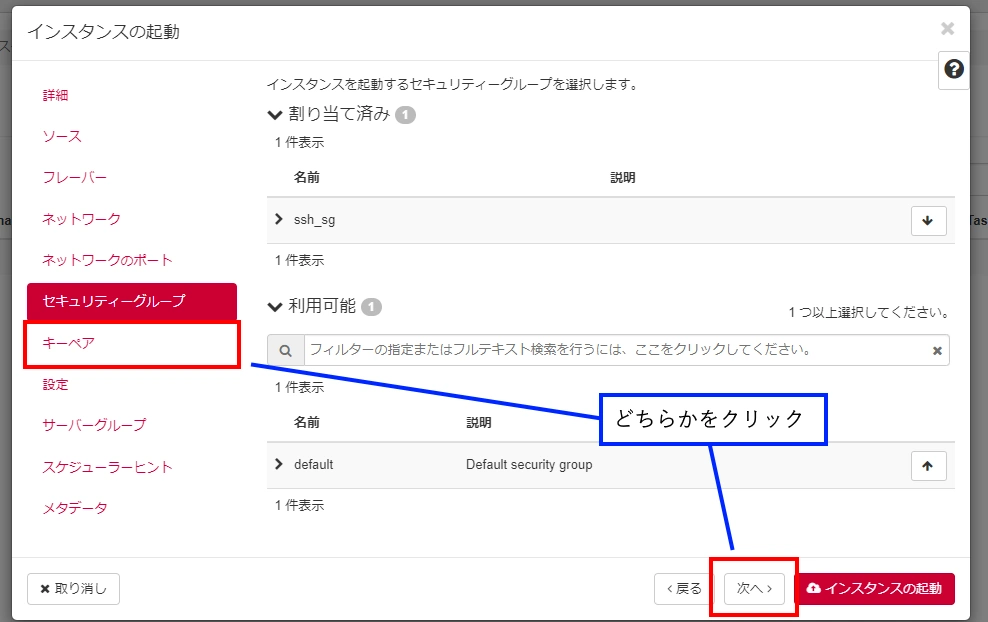 - 「キーペア」タブまたは「次へ」をクリックします。