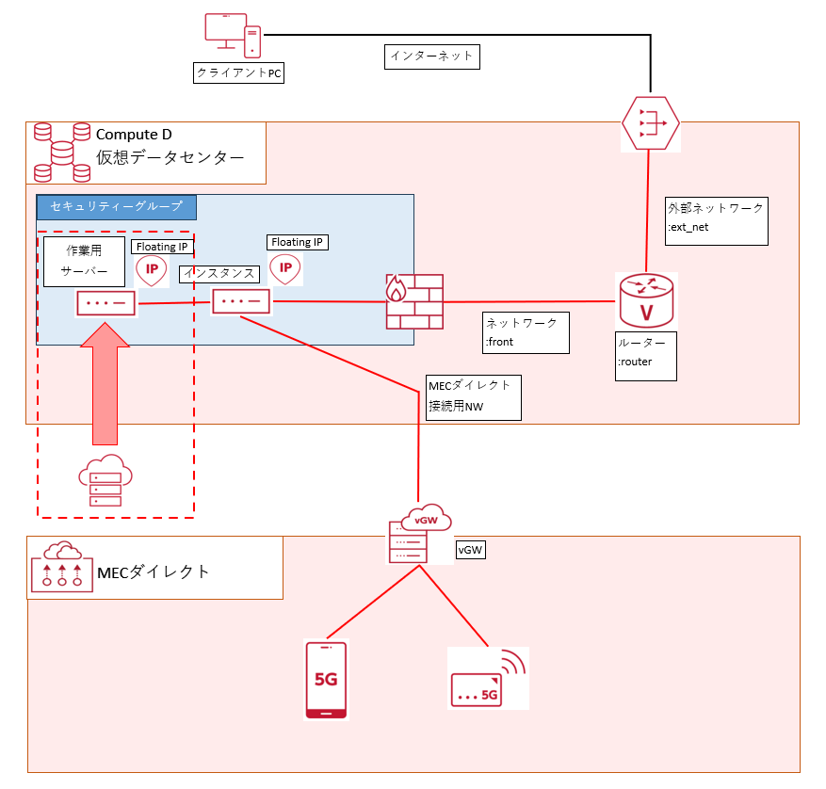 本節では、下図の赤破線枠箇所の作業用サーバーの構築を行います。