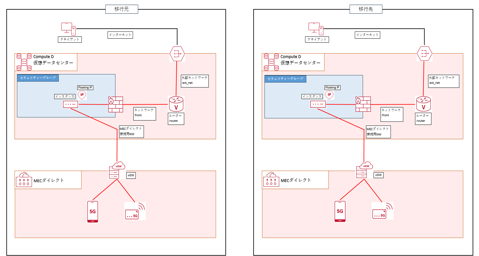 ※ 5Gデータ通信端末側から、Compute DのvGWはPing応答しない仕様となります。