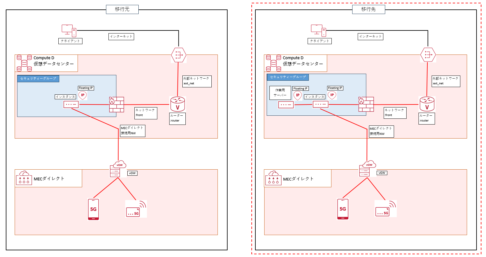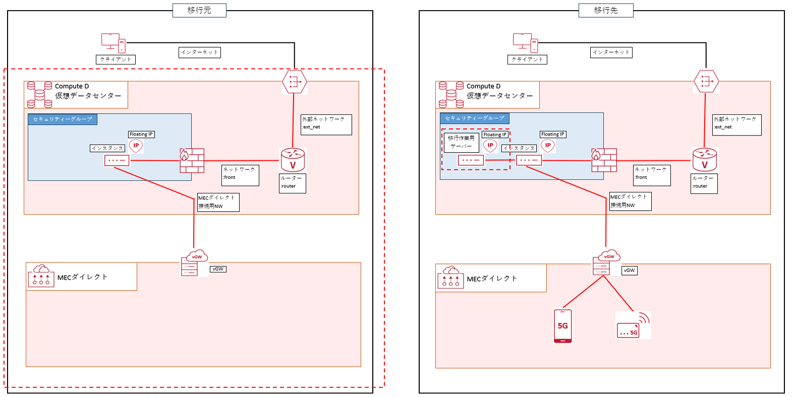 下図の赤破線枠箇所の移行作業を行います。