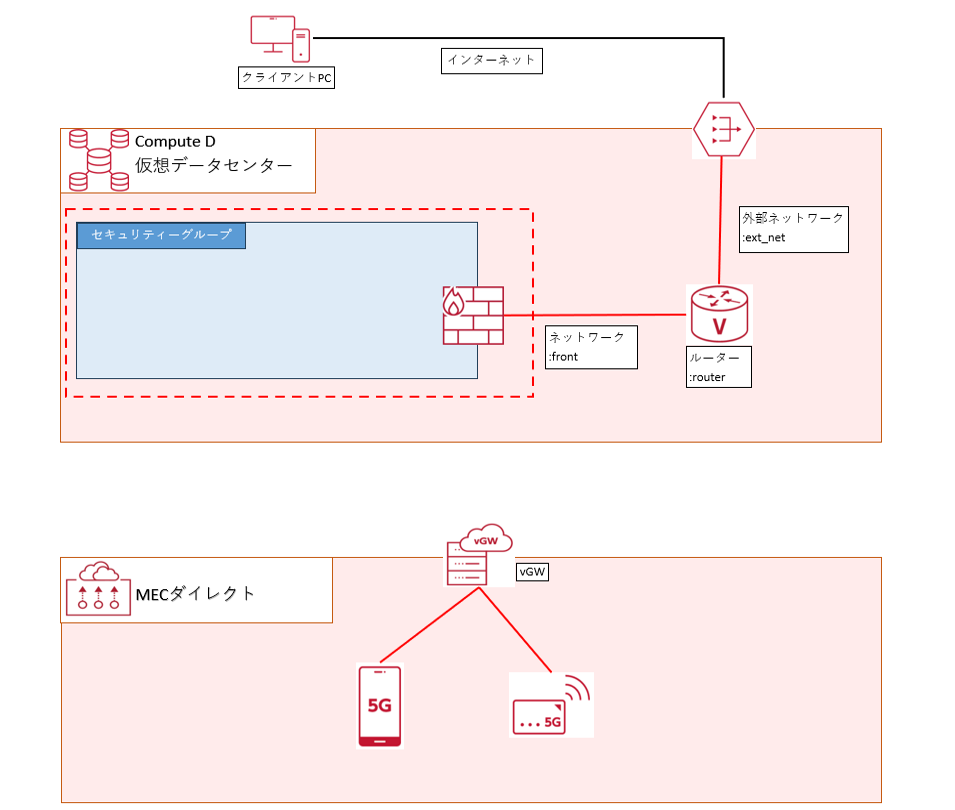 概要 本項では、下図の赤破線枠箇所のセキュリティーグループの設定を行います。 作業内容 アクセス制御をするためセキュリティーグループを作成し設定します。 詳細については以下をご参照ください。 セキュリティーグループの作成