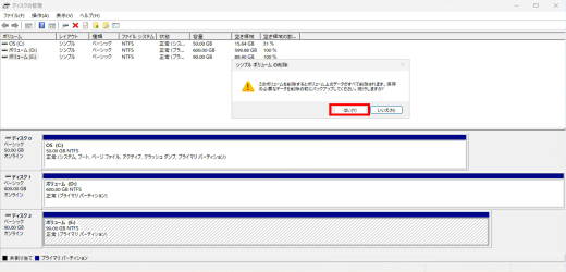 ディスク2部分が「オフライン」と表示されていることを確認してください。