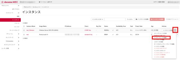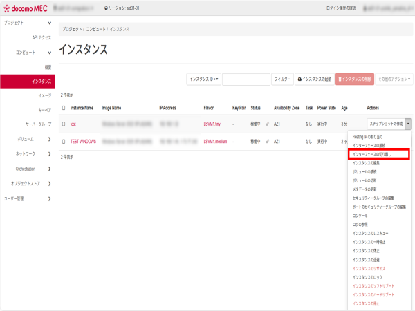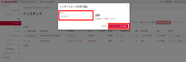 インスタンスのインターフェースの切り離しについてご利用手順をご説明いたします。操作手順