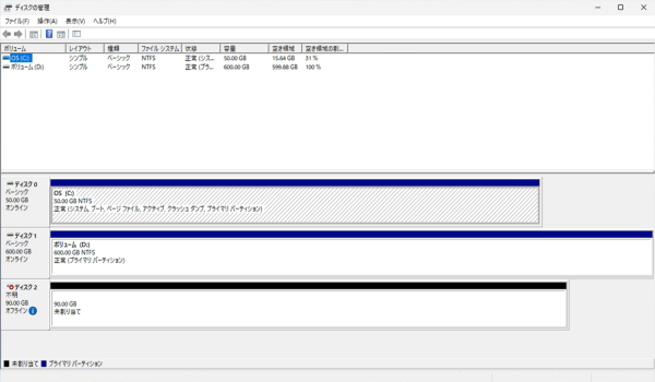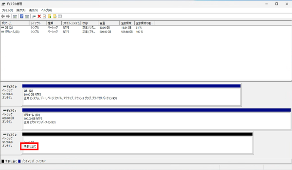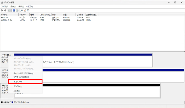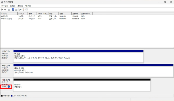 - ディスク2部分が「オフライン」と表示されていることを確認してください。