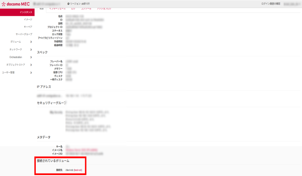 インスタンスへのボリュームの接続についてご利用手順をご説明いたします。