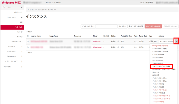 インスタンスへのセキュリティーグループの割り当てについてご利用手順をご説明いたします。前提条件