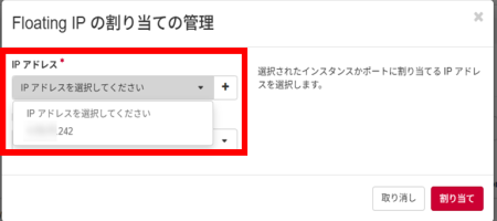 「IPアドレス」から、割り当てたいIPアドレスを選択します。