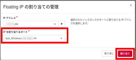 「IPを割り当てるポート」から、割り当てたいポートを選択し、「割り当て」をクリックします。