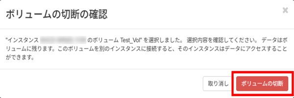 内容を確認の上、「ボリュームの切断」をクリックします。