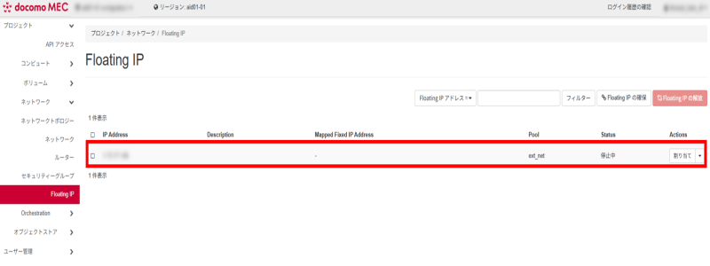 Floating IPが確保されていることを確認します。