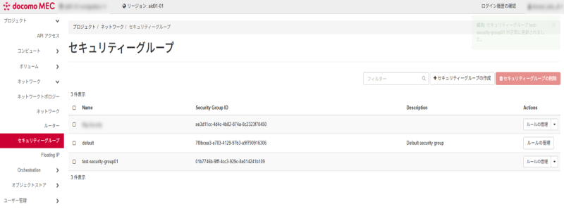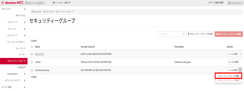 セキュリティーグループの編集についてご利用手順をご説明いたします。前提条件