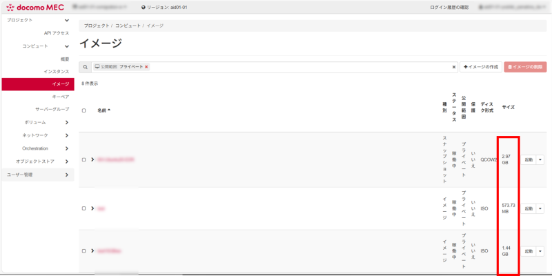 お申し込みいただいている「オブジェクトストア スナップショット保存用 (Image:Glance) 」の数量をご確認ください。※お申込内容がご不明な場合は、弊社営業担当者へお問い合わせください。